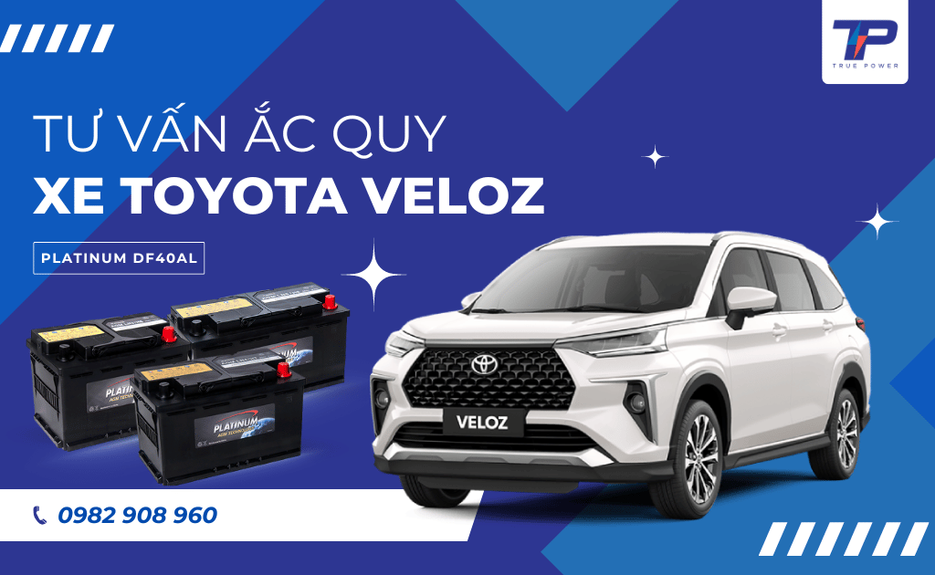 Loại ắc quy phổ biến cho Toyota Veloz là 12V, có dung lượng khoảng 45Ah - 55Ah và chỉ số CCA từ 380A - 450A. Kích thước chuẩn thường là B24 hoặc B19 (tiêu chuẩn JIS), phụ thuộc vào từng phiên bản và năm sản xuất của xe.